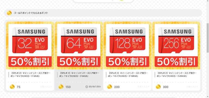マイニンテンドーのmicroSD 50%OFF券をポイントで買ったけど…